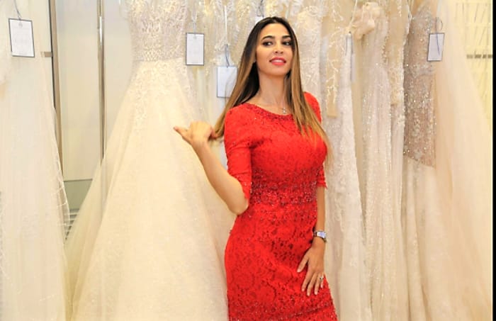 Cecilia Capriotti e la foto con gli abiti da sposa