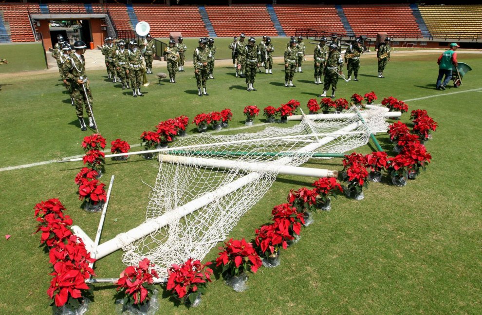 E intanto a Medellin, allo stadio Atanasio Girardot si sono svolte le celebrazioni per le vittime dell’incidente aereo. Nello schianto sono morti 71 dei 77 passeggeri e sullo stadio è stata poggiata a terra una porta, circondata da fiori rossi (foto Ansa).