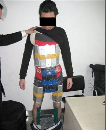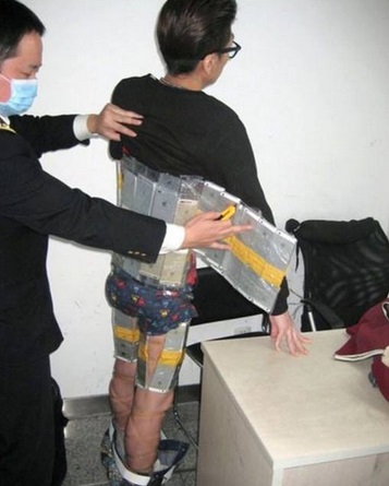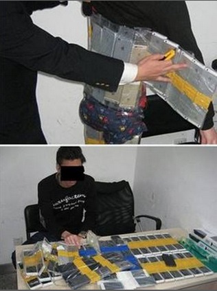 L’uomo cercava di entrare a Shenzhen a piedi. I doganieri si sono insospettiti della sua camminata appesantita.