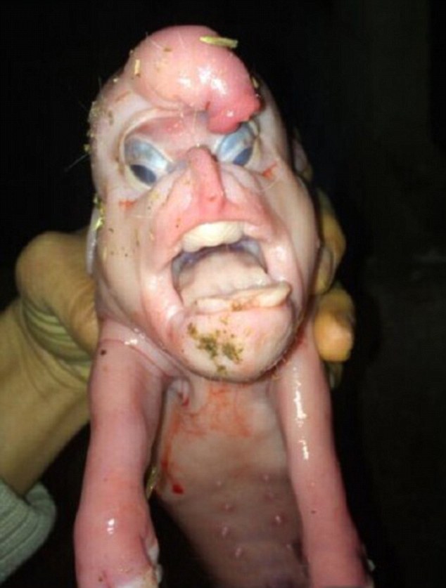 NANNING (CINA) – Un maialino è nato con una faccia malformata che, a detta di molti, con la sua faccia a forma di becco, gli occhi enormi e la fronte cresciuta, lo faceva assomigliare ad un uomo. Il piccolo, poco dopo la sua nascita è morto e diversi “collezionisti di organi” si sono detti pronti ad acquistare i resti del povero maialino. La creatura è nata in una fattoria cinese di Nanning: il suo padrone si chiama Tao Lu, ed ha raccontato al Daily Mail di essere stato inondato di offerte. Il contadino ha così deciso di conservare il maiale nella speranza di trasformarlo in un’attrazione turistica.
