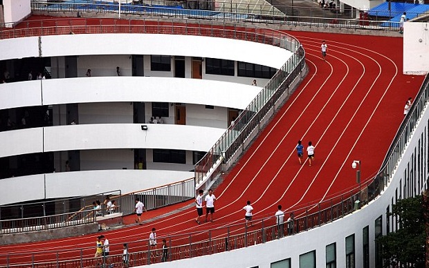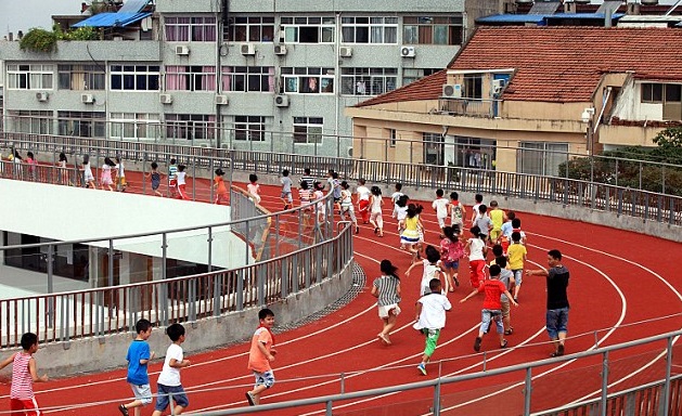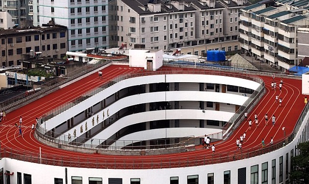 TIANTAI (CINA) – A Tiantai in Cina, una pista d’atletica per i 200 metri è stata costruita sul tetto di un’edificio di un campus scolastico. La città di Tiantai si trova nella provincia di Zhejiang ed è nota per un importante scuola di buddismo.