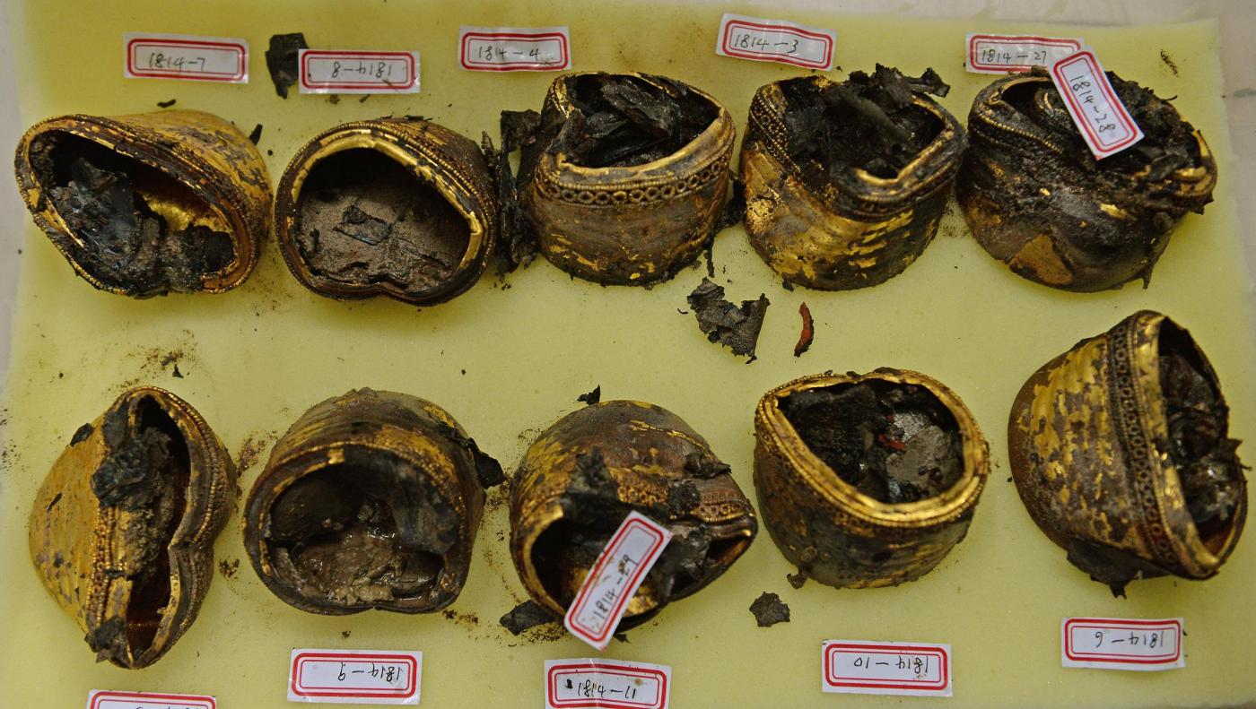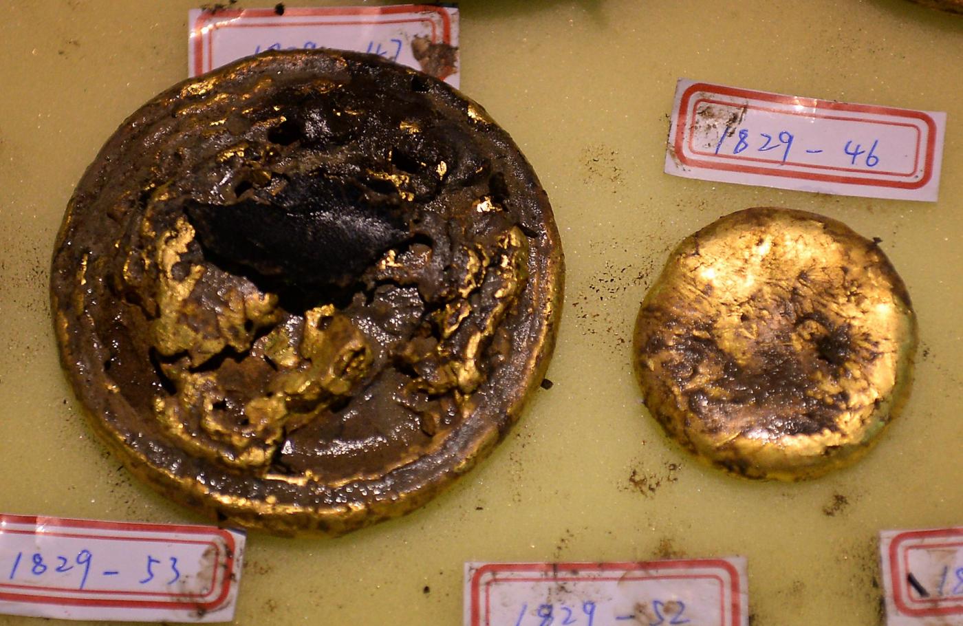 Fra gli artefatti riportati alla luce finora ci sono anche un ritratto di Confucio, circa 3mila tavolette di legno e bacchette di bambù e moltissimi oggetti di bronzo, oro e giada. La maggior parte delle monete pesa circa 250 grammi e la grande quantità di monete ritrovate è in linea con i dati in base ai quali la Cina aveva in quel periodo consistenti riserve di oro.
