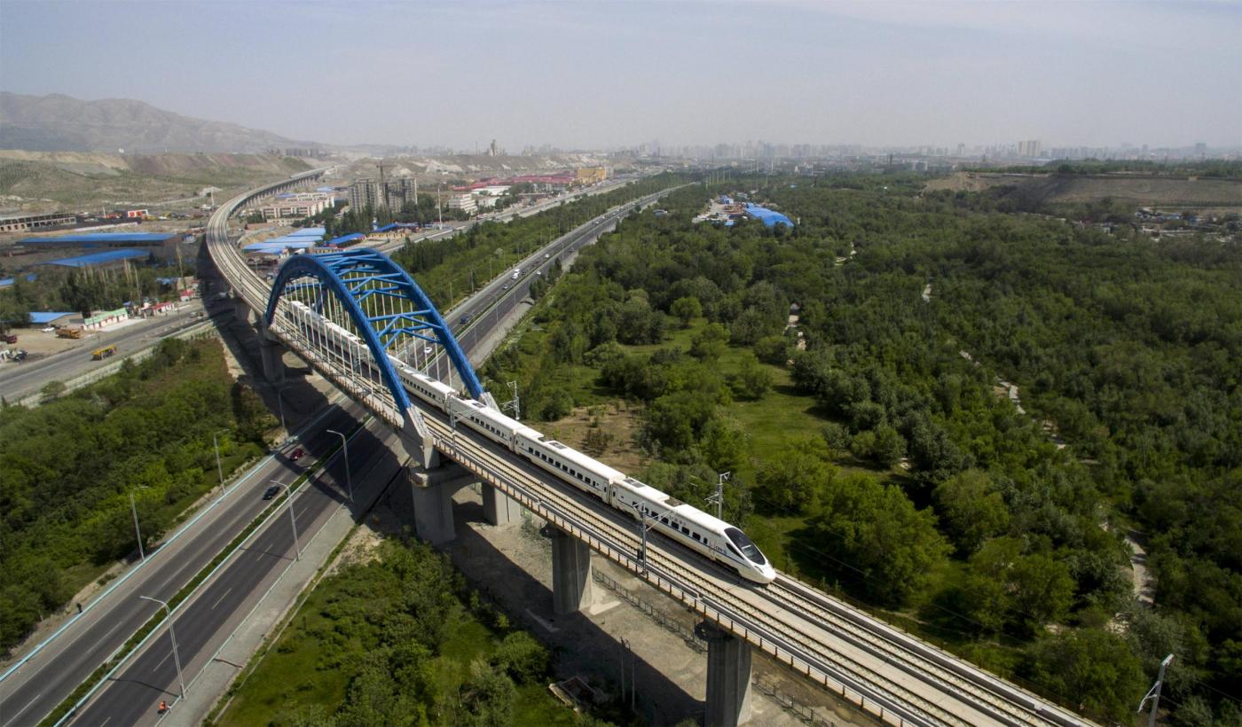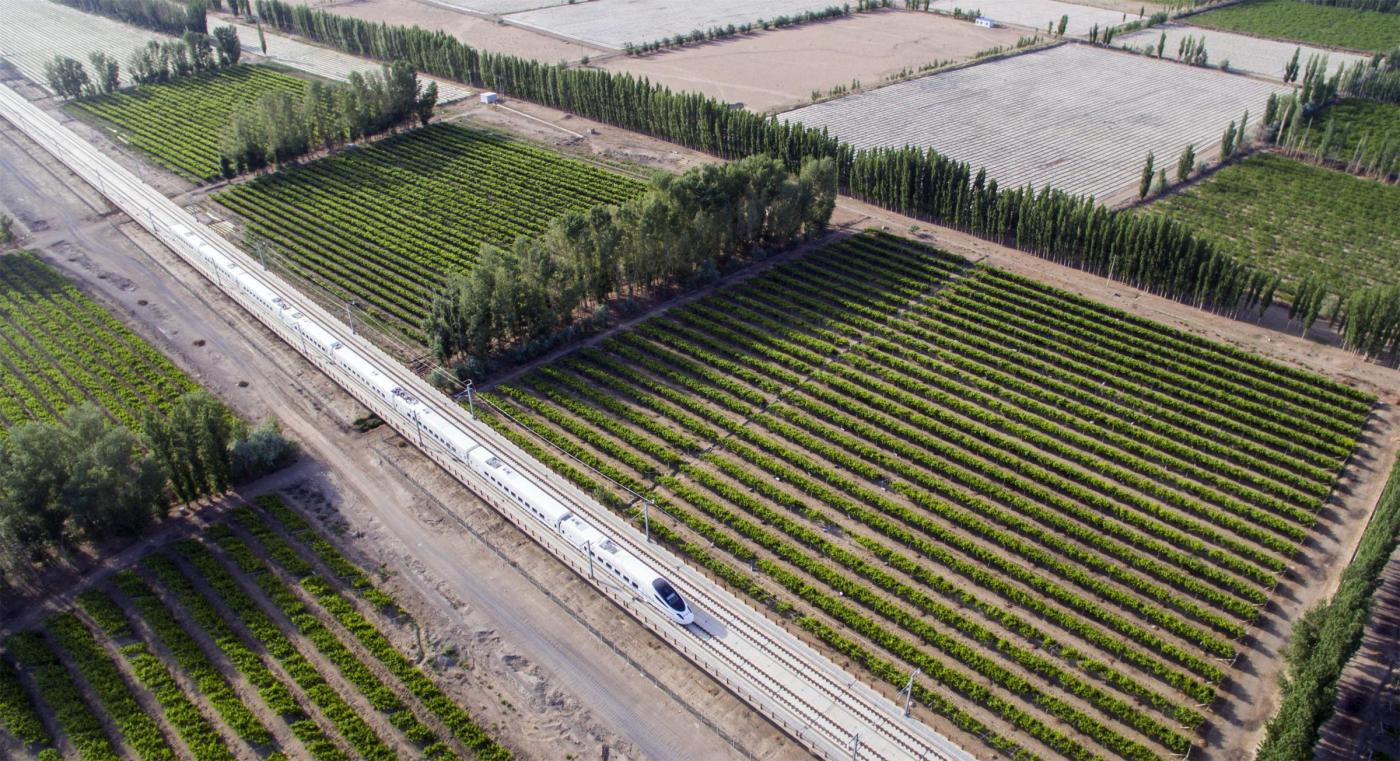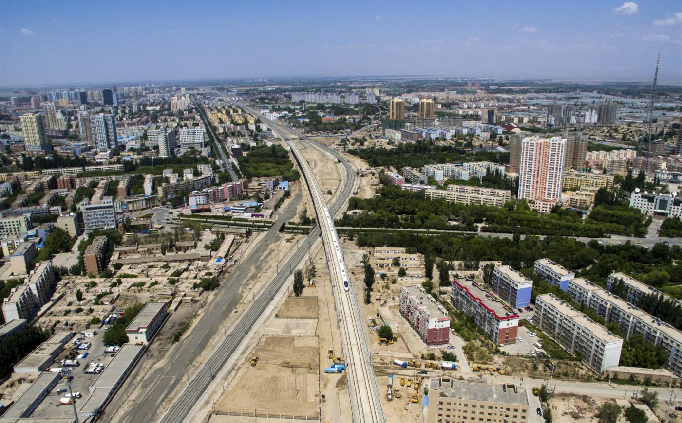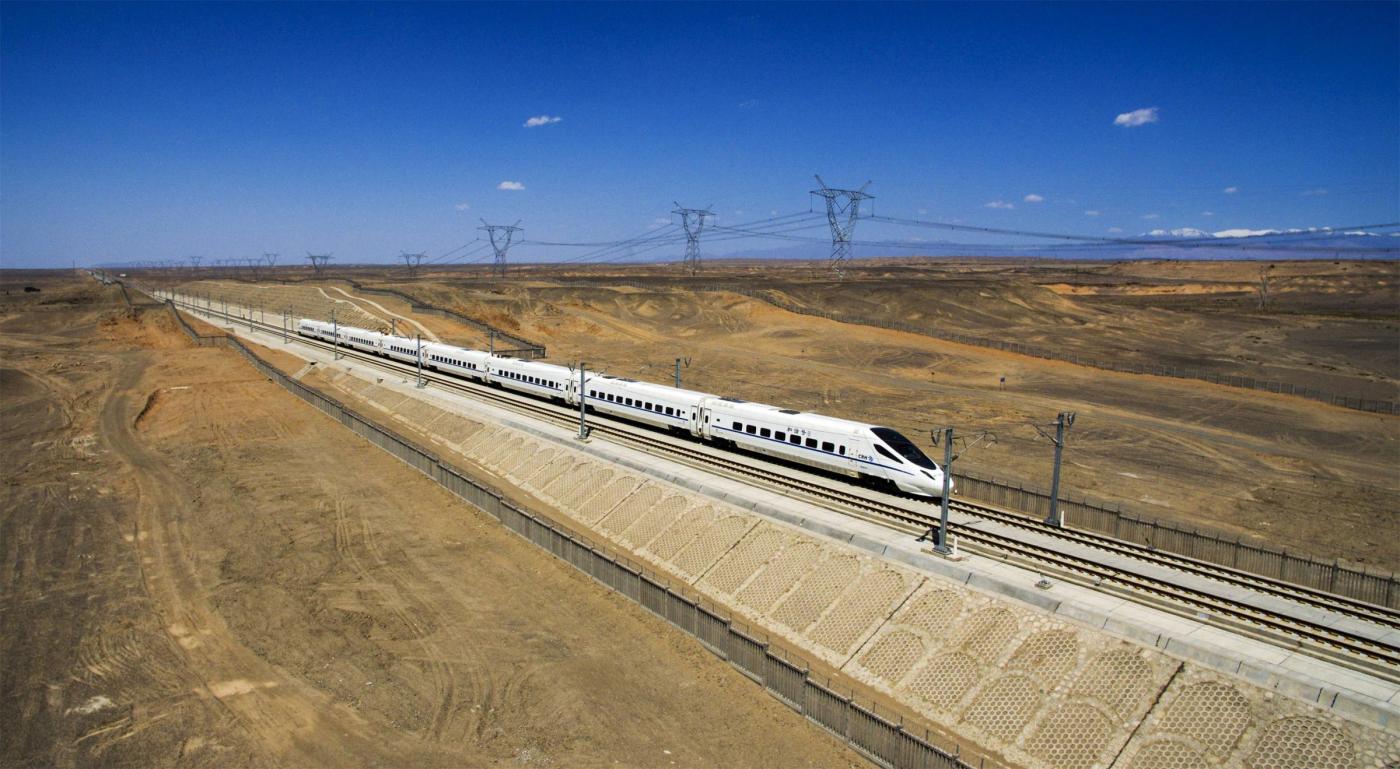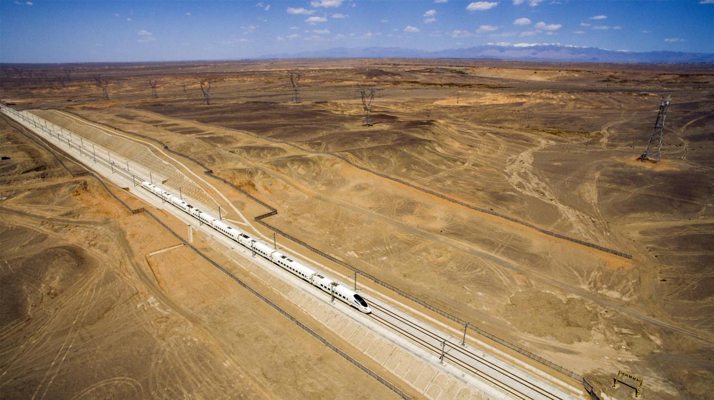 Il locomotore è stato filmato da un drone mentre sfrecciava sulla ferrovia lunga 1.776 chilometri che collega Lanzhou, capitale della provincia di Gansu, a Urumqi, che si trova nella parte nord-occidentale della Cina.