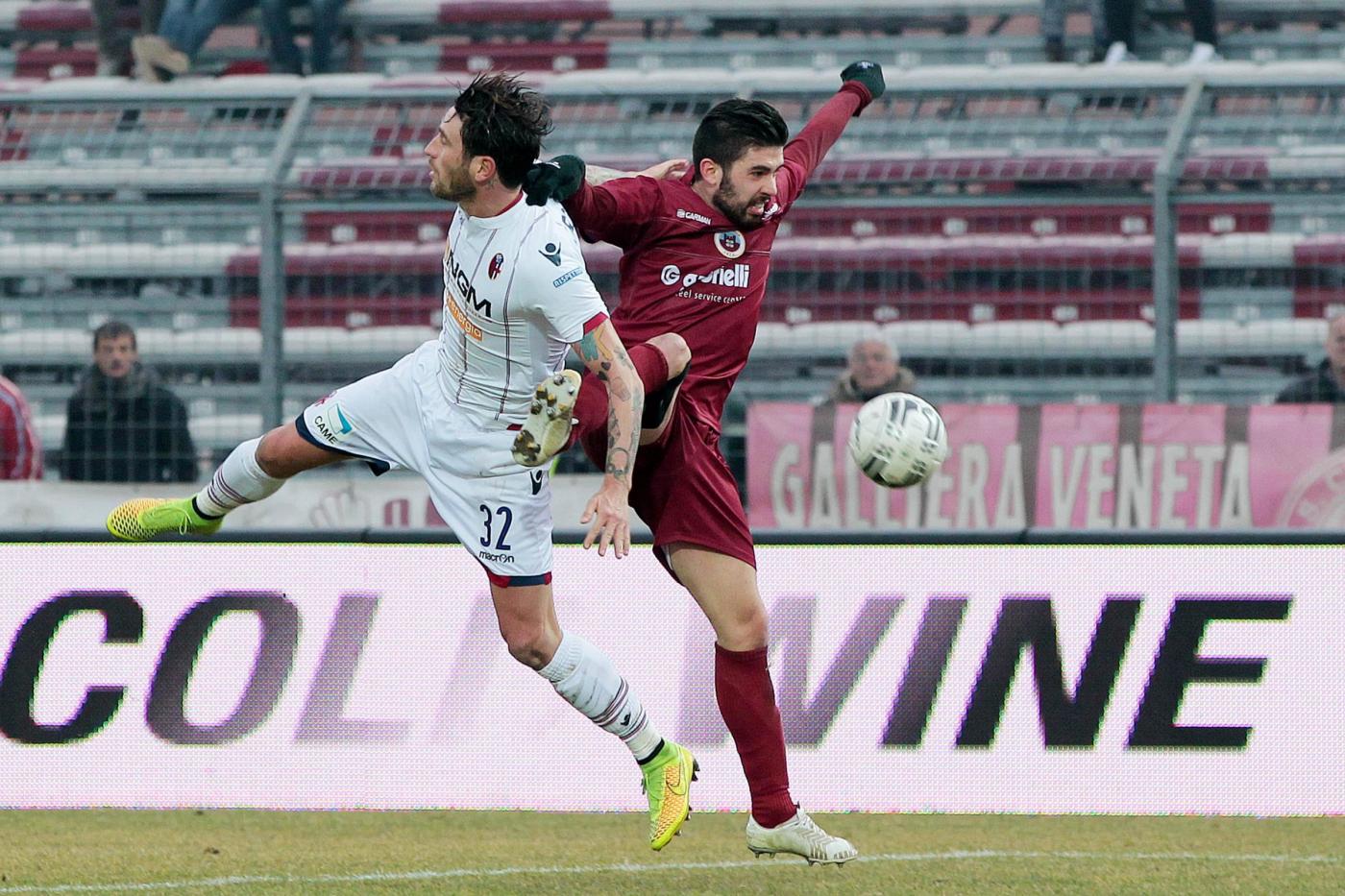Nella ripresa i granata di Foscarini provano a ribaltare il risultato, ma la retroguardia bolognese si dimostra sempre pronta. Nonostante la sconfitta, il Cittadella rimane a ridosso dei playout con 30 punti. Foto LaPresse.