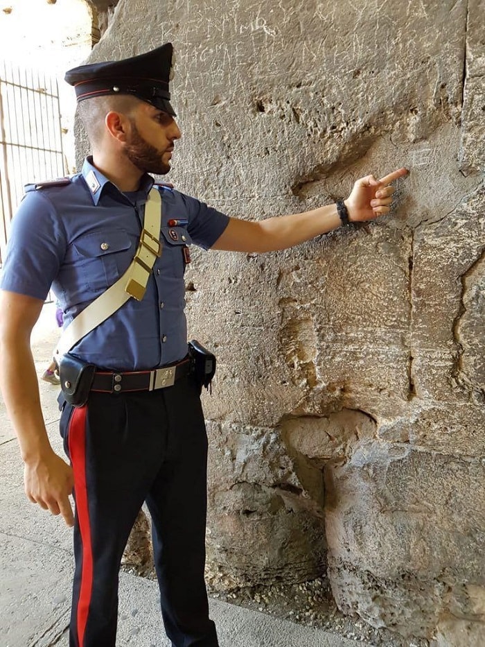 Si tratta di un brasiliano di 17 anni che ha pensato bene di lasciare un “segno indelebile” del suo passaggio nella Capitale. I carabinieri del Comando piazza Venezia e della Compagnia Speciale lo hanno denunciato a piede libero per danneggiamento aggravato sorprendendolo mentre incideva con una pietra l’iniziale del suo nome. Ansa pubblica le foto dello sfegio.