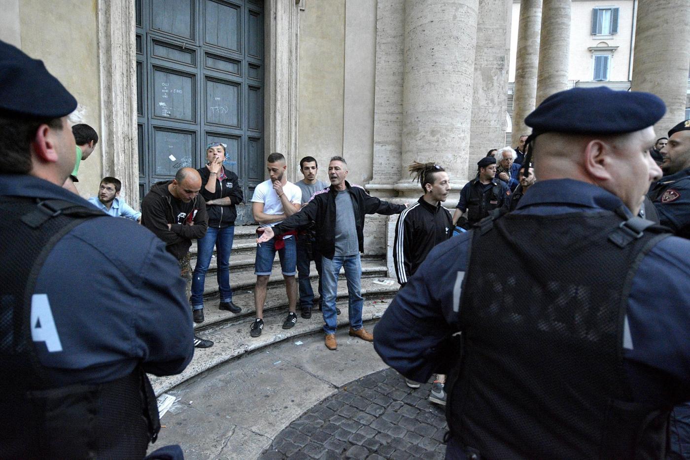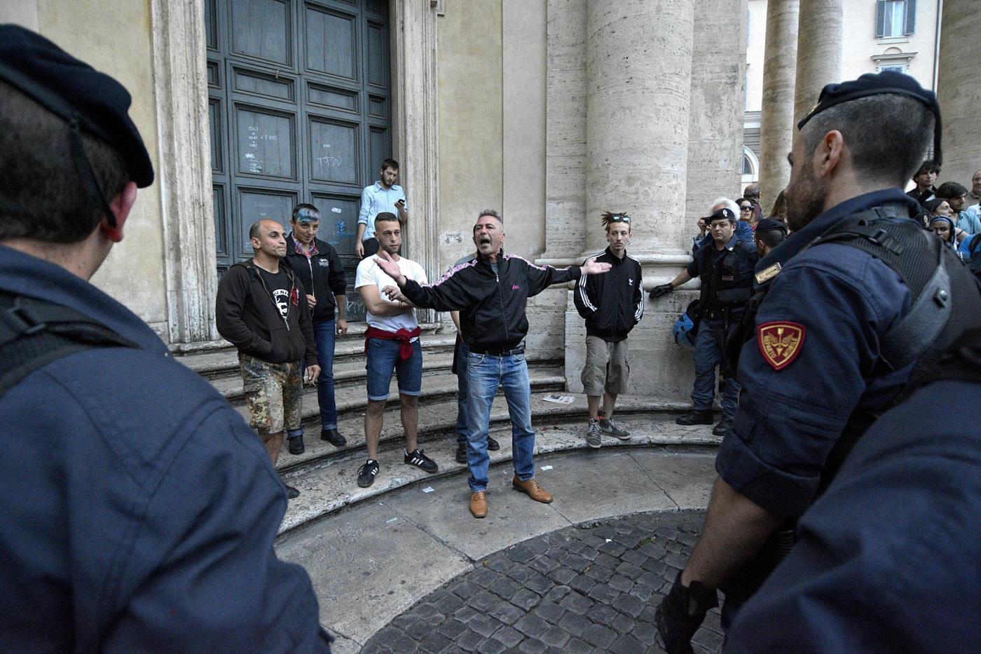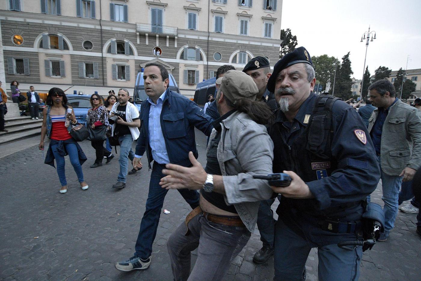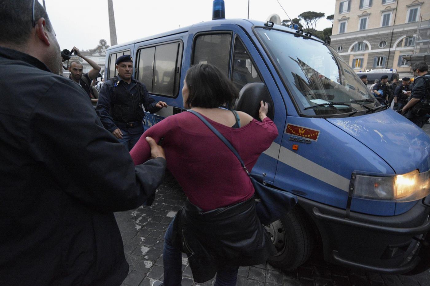 Durante il comizio un gruppo di persone che fanno riferimento ai movimenti per la casa ha tentato di entrare a piazza del Popolo e srotolare uno striscione, all’inizio della manifestazione elettorale del Pd.