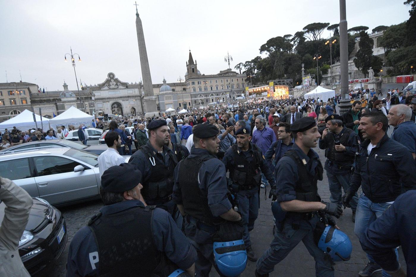 ROMA – Contestazioni e proteste durante il comizio di Matteo Renzi e del Pd a piazza del Popolo a Roma. Oltre 40 le persone sono state fermate dalla Digos dopo le contestazioni rivolte al premier. In terra, in piazza, è stato anche trovato un pugnale con una lama di diversi centimetri.