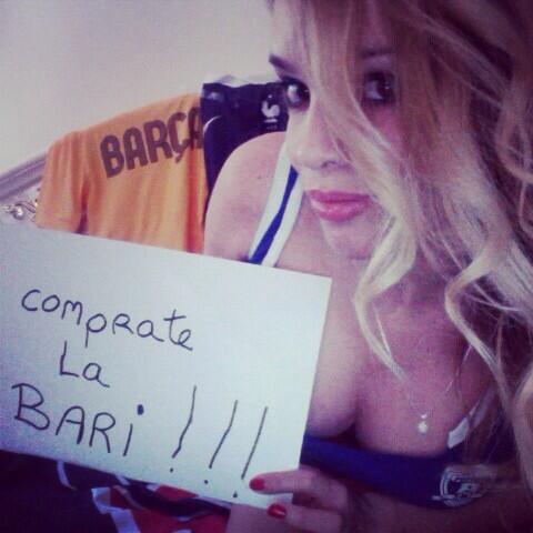 Il tormentone è arrivato persino in Francia e oggi un’altra attrice di film per adulti si è divertita a usare l’hashtag #compratelabari, Virginie Caprice, che di solito scrive pronostici delle partite sulle curve del proprio corpo. Ecco la gallery direttamente dai social network.