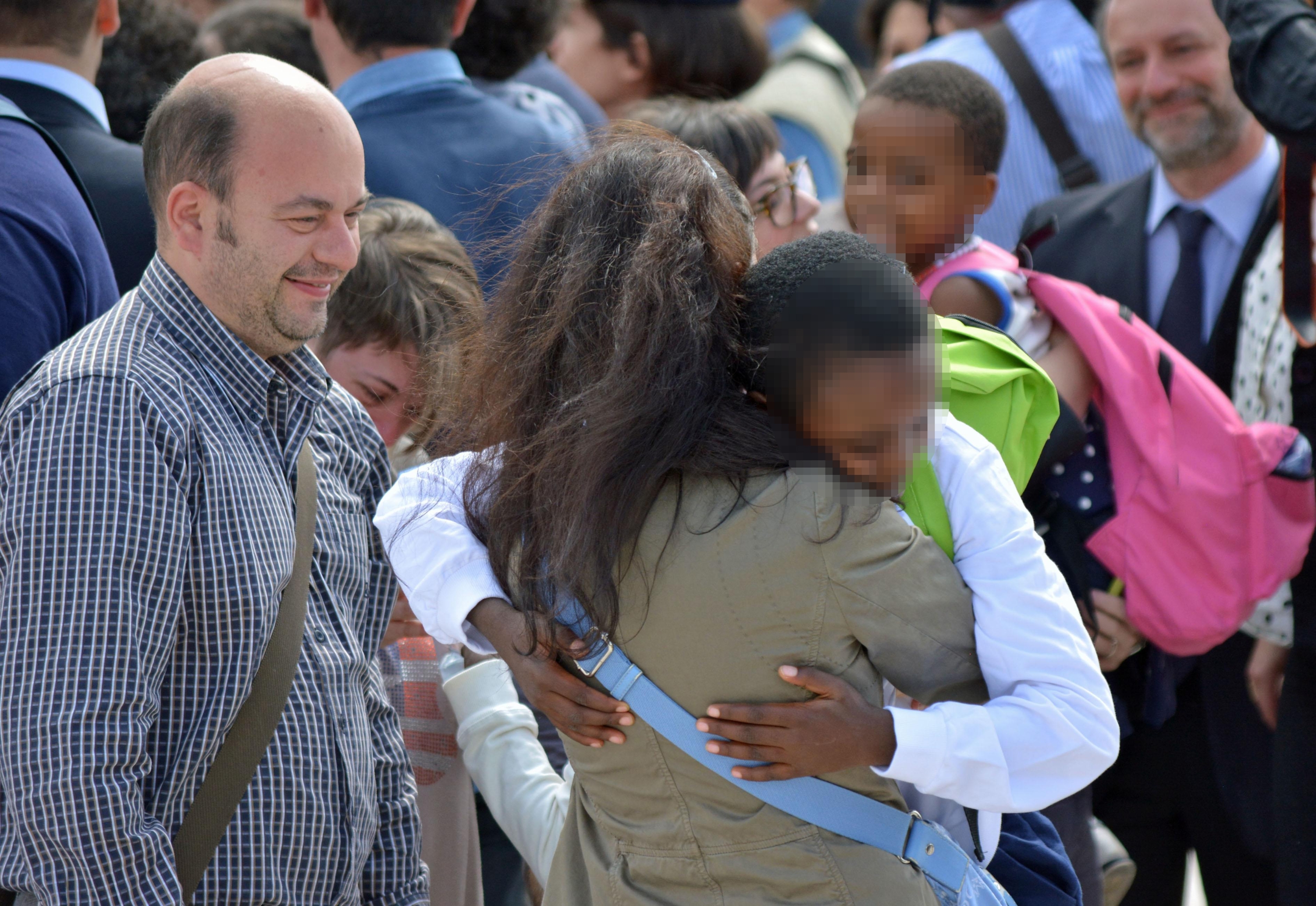 CIAMPINO (ROMA) – Una treccina ai capelli. E’ questo il regalo che Marty, una bimba congolese, ha fatto al ministro delle Riforme, Maria Elena Boschi, durante il volo sull’aereo di Stato che da Kinshasa ha portato in Italia i 31 bimbi africani adottati da 24 famiglie italiane. Lo ha riferito lo stesso ministro raccontando alcuni aspetti del volo, su cui c’erano anche la presidente della Commissione adozioni internazionali, Silvia Della Monica, il vicedirettore generale della Farnesina per gli italiani all’estero e le politiche migratorie, Marco Del Panta, e un funzionario dell’Unità di crisi della Farnesina che è stata la figura che in tutti questi mesi ha lavorato in stretto riserbo alla soluzione della vicenda.