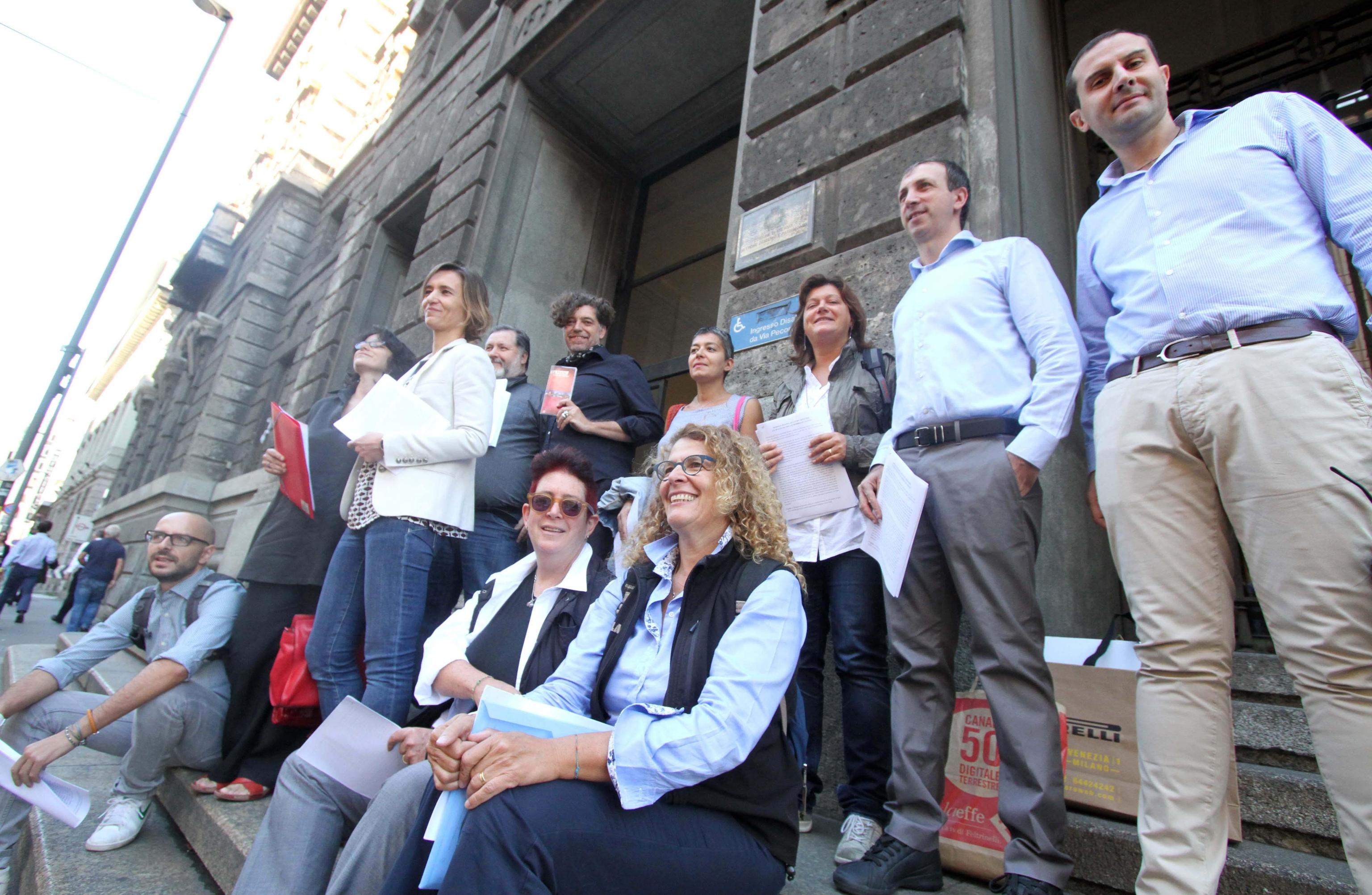 MILANO – Una dozzina di coppie omosessuali sposate fuori dall’Italia sono riunite davanti all’ufficio anagrafe del Comune di Milano per chiedere la trascrizione della propria unione ”al pari delle altre coppie che scelgono un matrimonio all’estero”. L’iniziativa comune ha lo scopo di sollecitare una ”posizione definitiva” al sindaco Giuliano Pisapia, che – si legge in una nota sottoscritta dal gruppo – ”da oltre quattro medi ha avviato tramite l’assessore alle politiche sociali Pierfrancesco Majorino un confronto con Rete Lenford finito due mesi fa in un vicolo cieco”. ‘