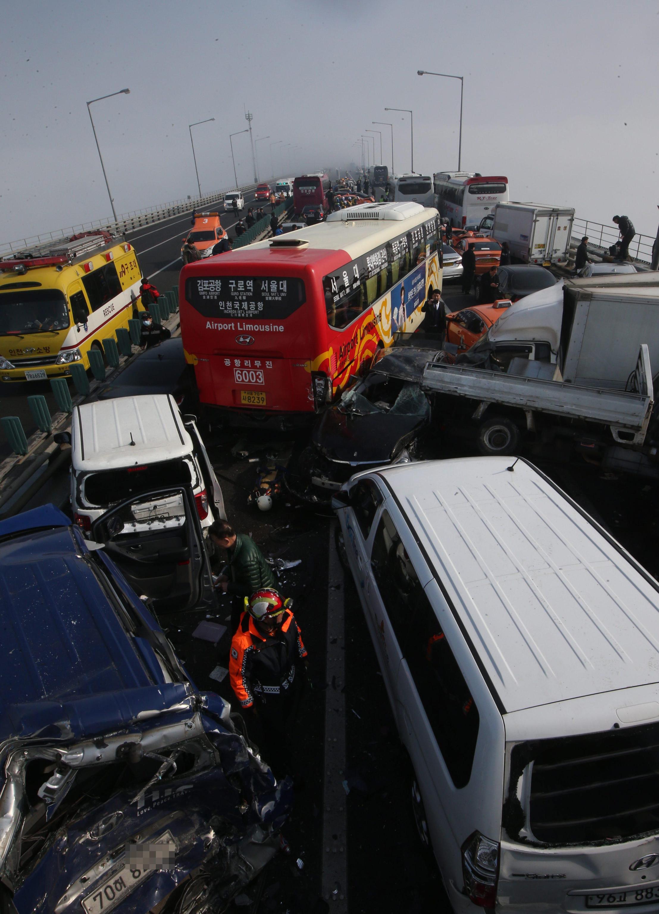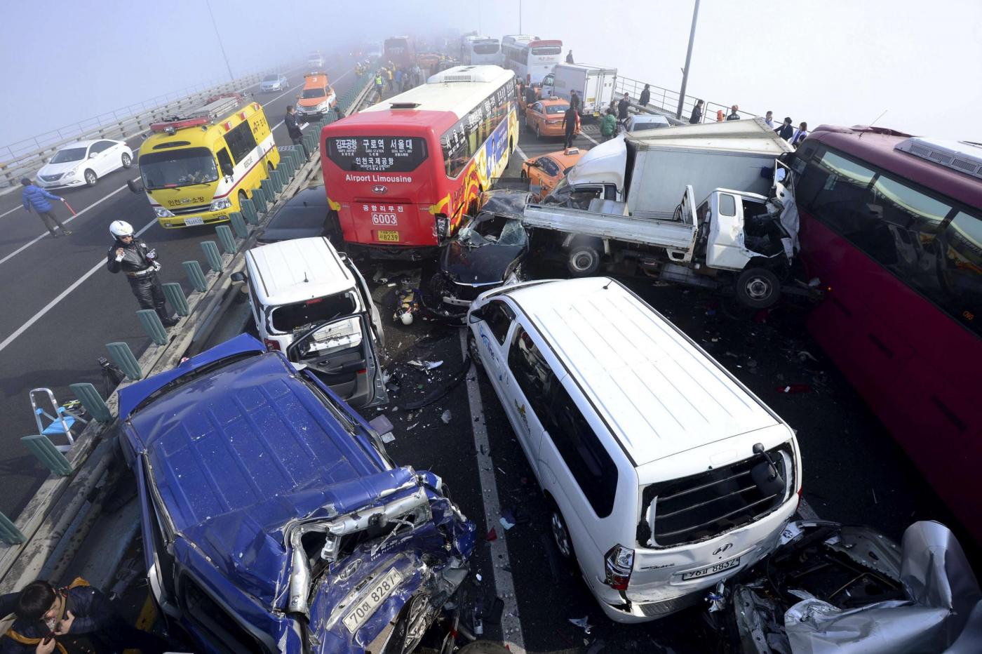 La dinamica dell’incidente avvenuto alle 9.30 ora locale (1,30 del mattino in Italia), ancora non è chiara, anche se le cause potrebbero essere nebbia e fondo stradale ghiacciato. Il maxi-tamponamento è accaduto su un ponte che collega Incheon e la capitale Seul allo scalo, che si trova sull’isola di Yongjing.