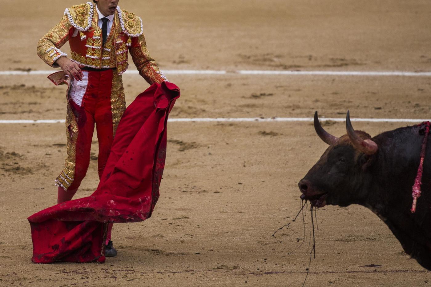 Tre dei principali matadores sono stati incornati durante la stessa Corrida presso la Monumental de Las Ventas. Una situazione che da moltissimi anni non si vedeva e che ha visto protagonisti Davide Mora, colpito all’addome dal toro e ancora in lotta tra la vita e la morte, Antonio Jimenez, infilzato ad una coscia, e Fortes Nazaré che si rotto i legamenti di un ginocchio.