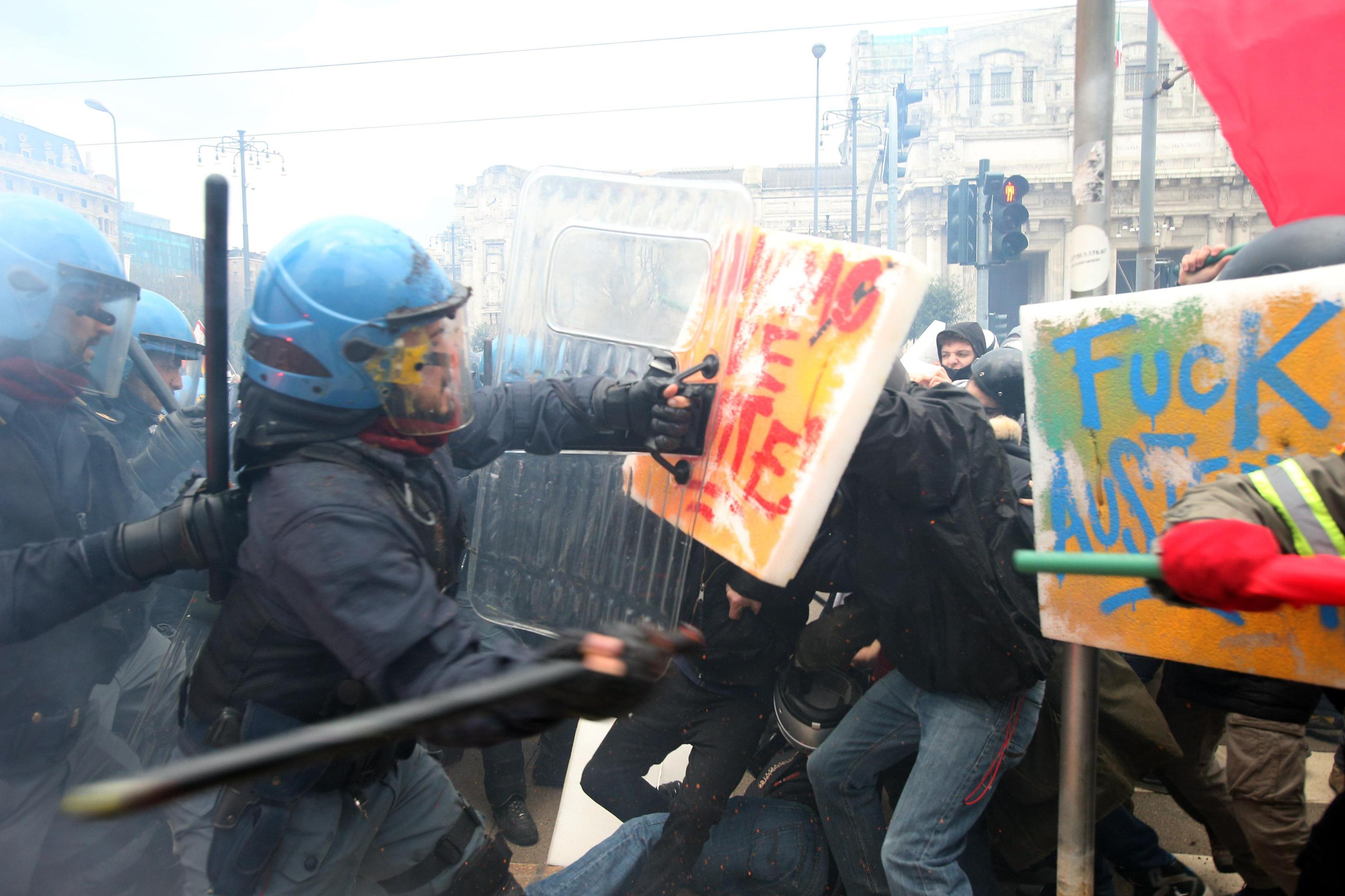 MILANO – Momenti di tensione a Milano, durante il corteo organizzato dalla rete studentesca in occasione dello sciopero generale indetto oggi 12 dicembre.