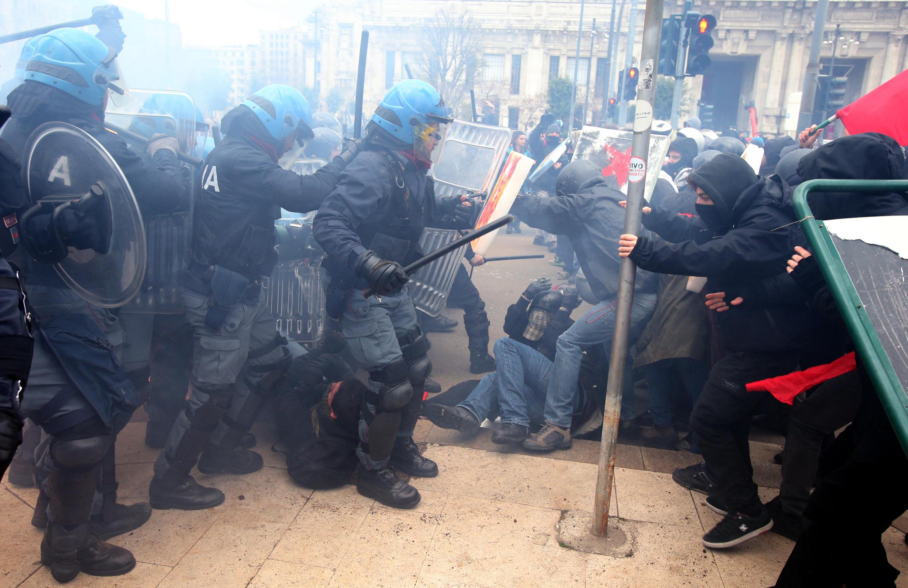 Una ventina di ragazzi vestiti da Babbo Natale ha anche scavalcato la recinzione del grattacielo Pirelli mentre altri lanciavano alcuni oggetti come pacchi di Natale, forbici di cartone e bottiglie.