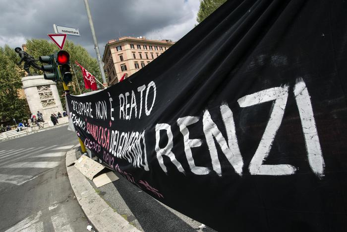 Il corteo degli antagonisti e dei Movimenti per la casa era iniziato con il fermo e l’identificazione di 80 manifestanti al Verano diretti verso Porta Pia, poi rilasciati, che agli agenti avevano detto: “Non siamo noi a nascondere Marcello Dell’Utri“. I manifestanti hanno poi continuato la marcia in piazza contro il governo di Matteo Renzi, l’austerity, il Jobs act e il piano casa.