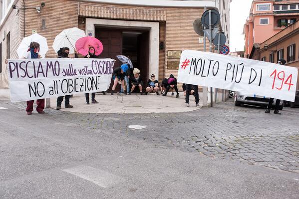 Il gruppo Cagne Sciolte rivendica con un’immagine su Twitter l’azione al ministero della Salute, a difesa della legge 194 sull’aborto, accompagnata dallo striscione con scritto ‘Pisciamo sulle vostre coscienze – No all’obiezione’. Un’altra foto mostra invece di spalle dei manifestanti – stavolta uomini – che fanno pipì.