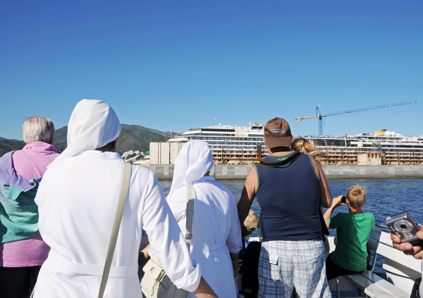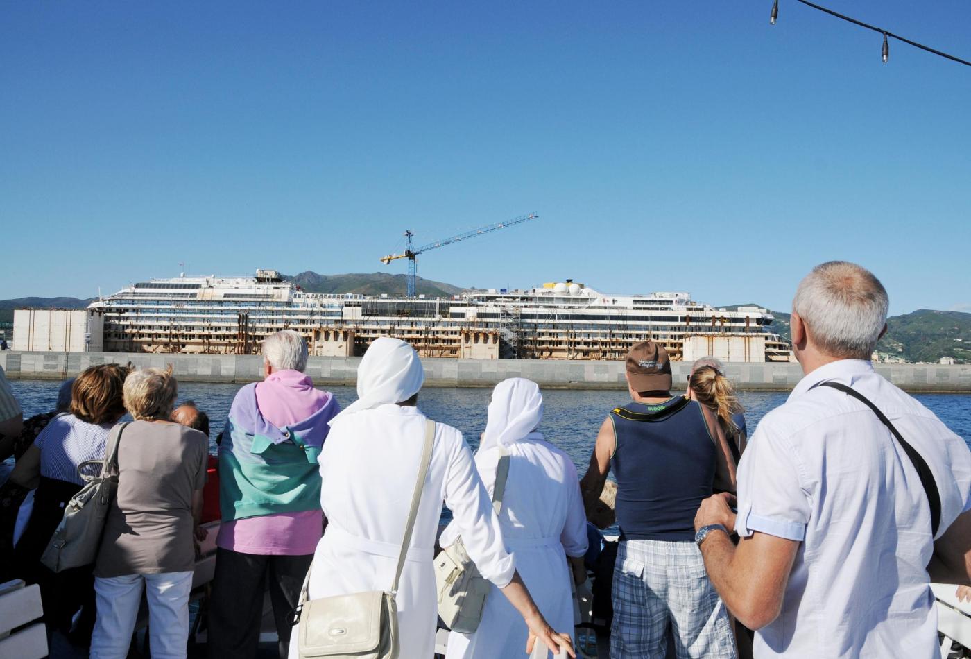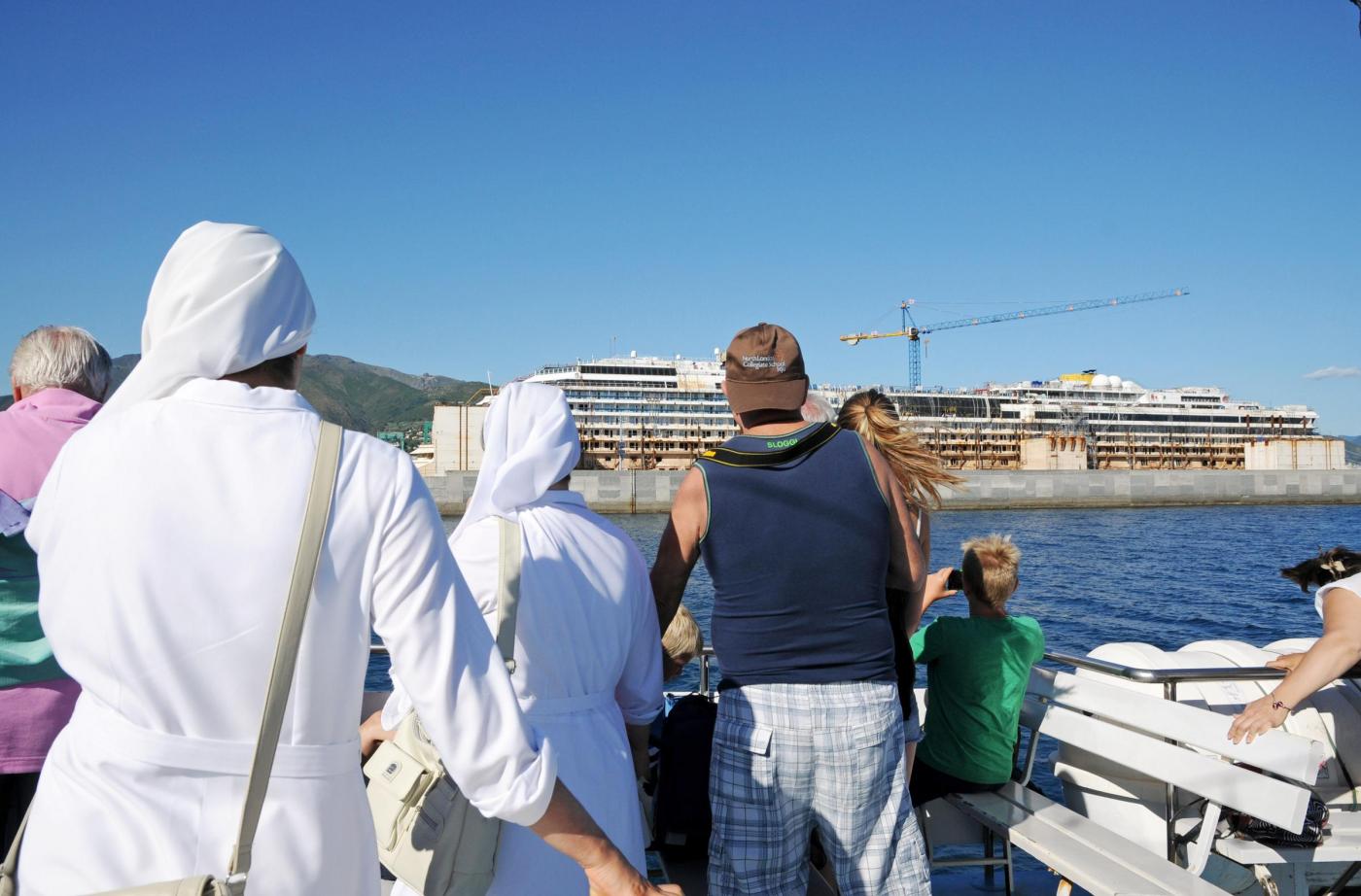 GENOVA – Partenza in battello dal porto di Genova, ma non per un giro turistico come tanti. Un tour operator locale offre per 10 euro una gita in cui lo spettacolo che gli organizzatori offrono ai turisti è quello del relitto della Concordia, il gigante del mare naufragato all’Isola del Giglio e che ora è parcheggiato nel porto di Pra Voltri.