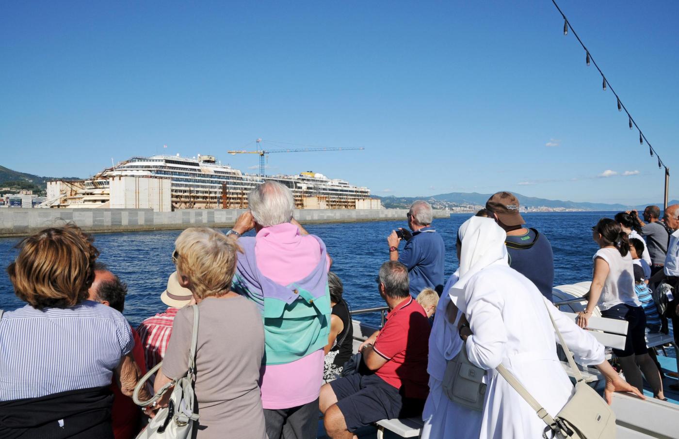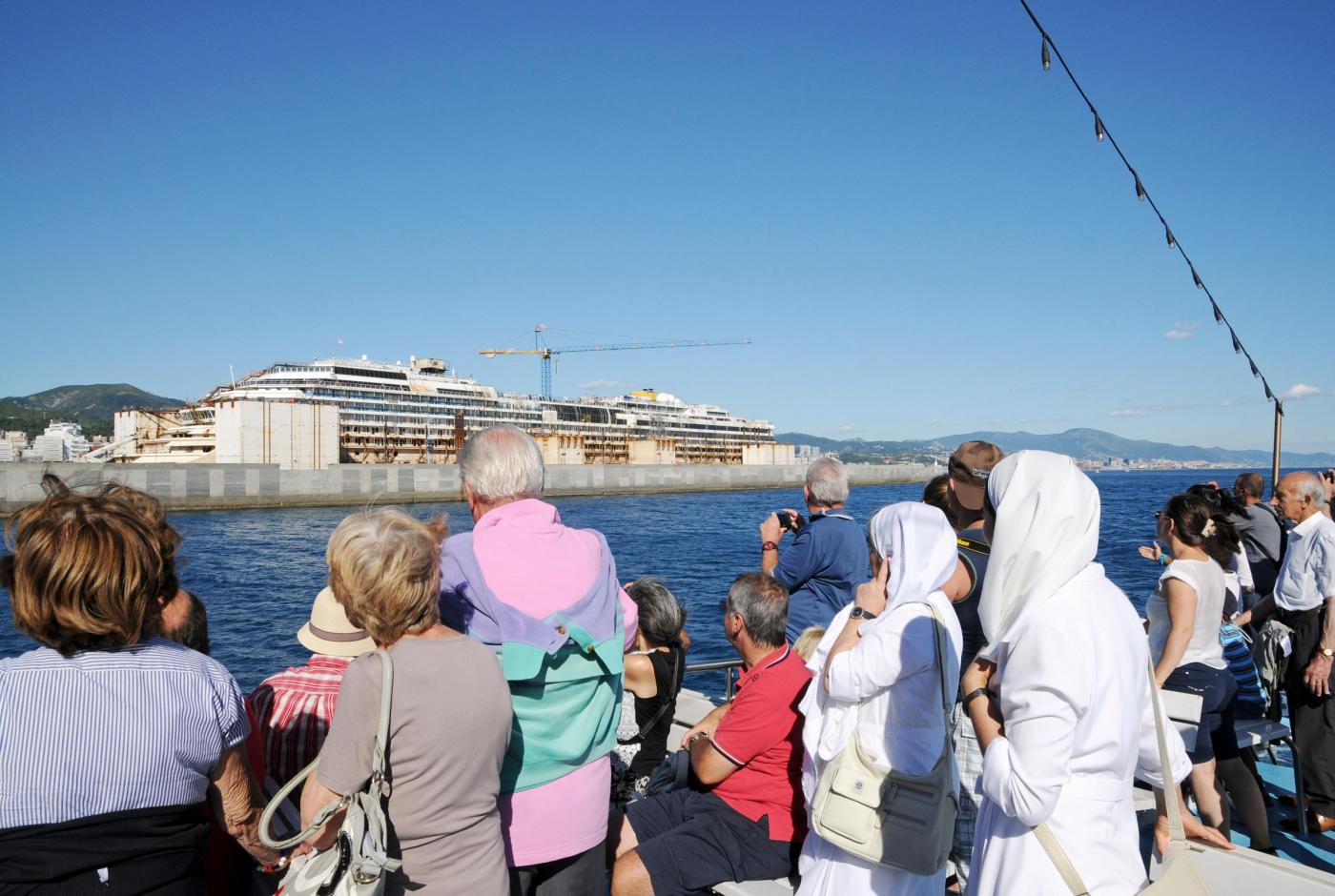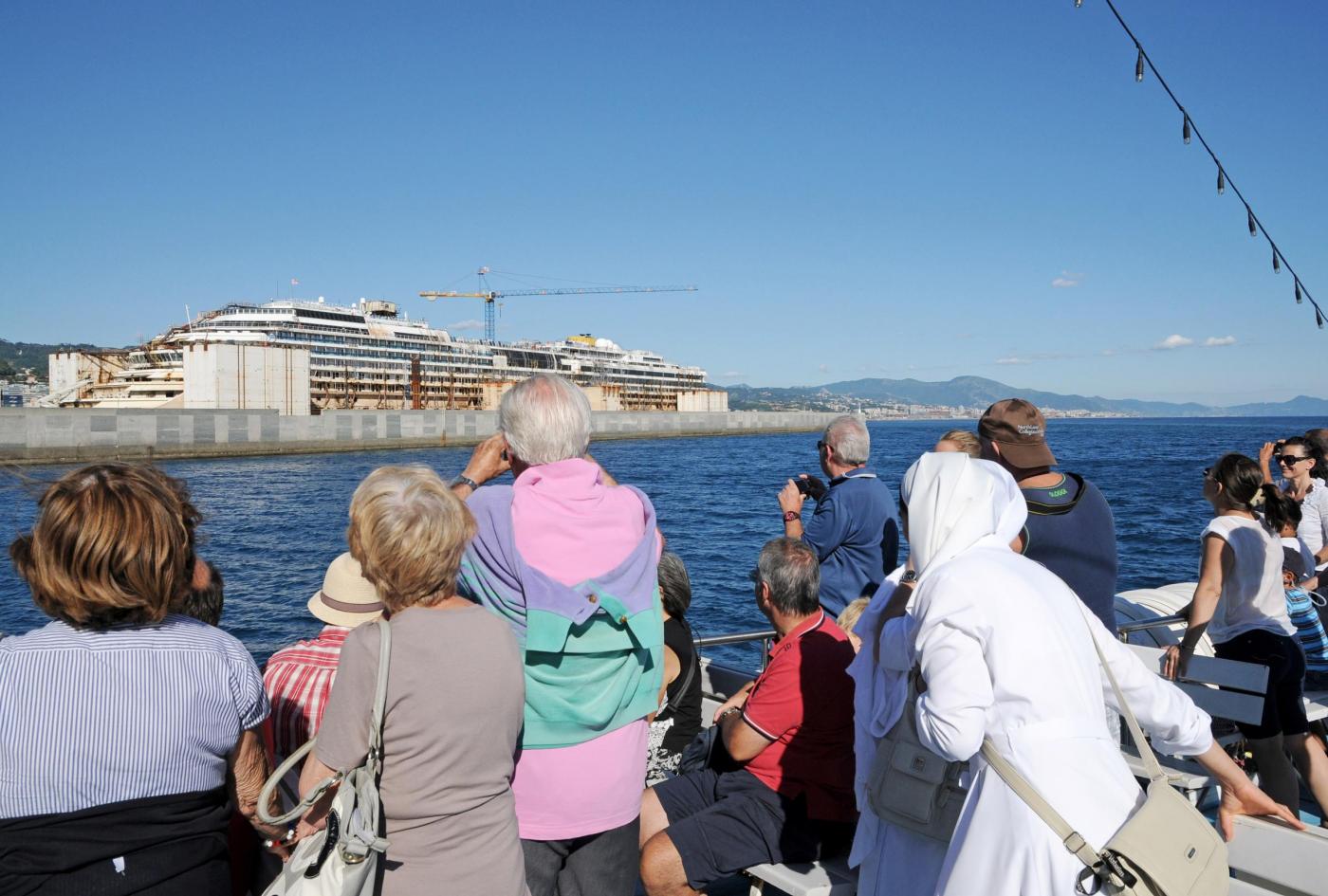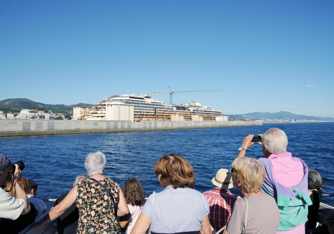 GENOVA – Partenza in battello dal porto di Genova, ma non per un giro turistico come tanti. Un tour operator locale offre per 10 euro una gita in cui lo spettacolo che gli organizzatori offrono ai turisti è quello del relitto della Concordia, il gigante del mare naufragato all’Isola del Giglio e che ora è parcheggiato nel porto di Pra Voltri.