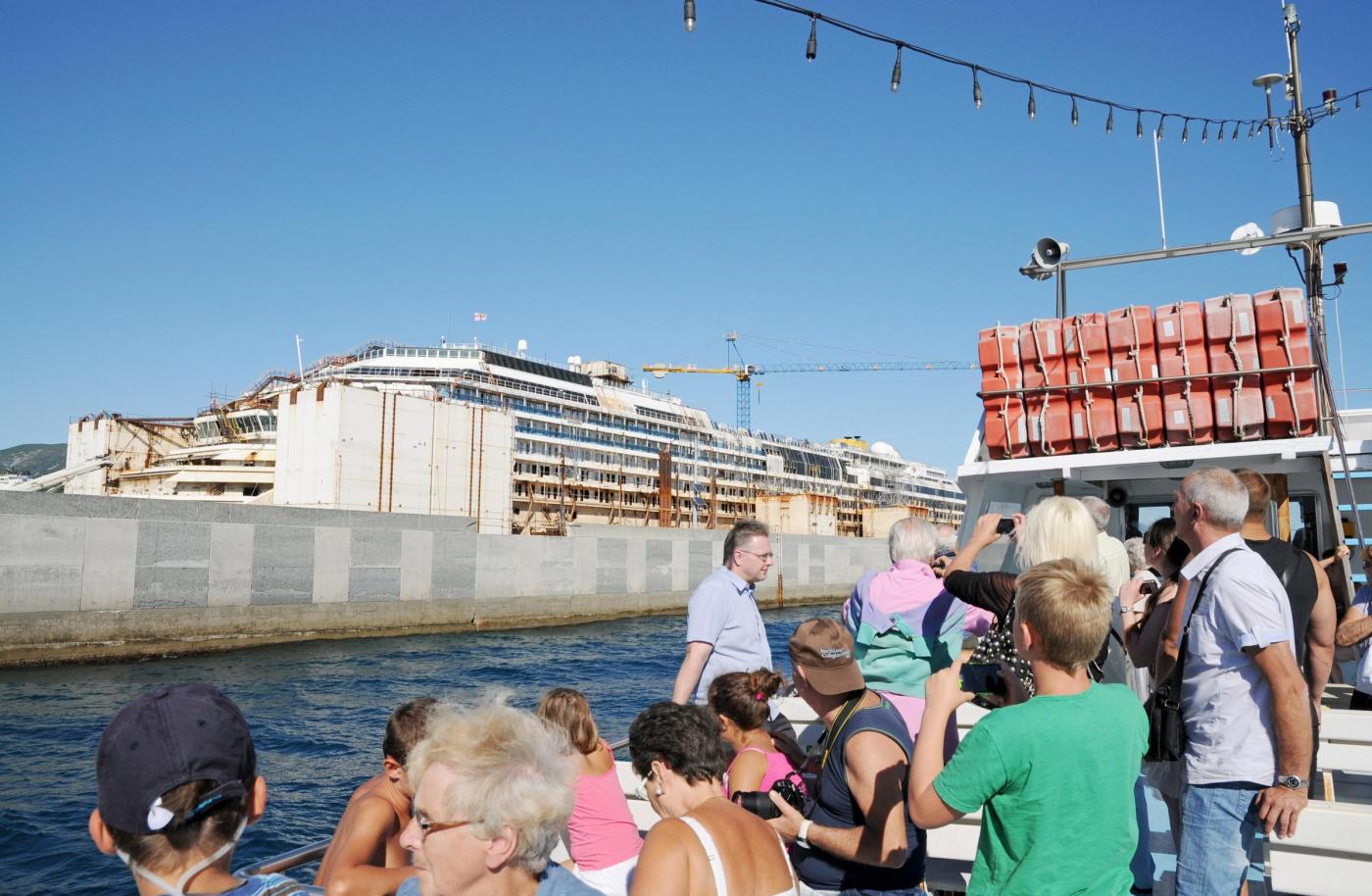 Nel tour si può vedere ciò che resta della tragedia in cui sono morte 32 persone che ha visto coinvolta la nave da crociera della Costa e il comandante Schettino. Dieci euro andata e di ritorno. Per vedere la carcassa della nave, da 200 metri di distanza. Nel prezzo è compresa anche la cronistoria al megafono, dalla nascita della Concordia in Fincantieri, fino al tragico inchino al Giglio.