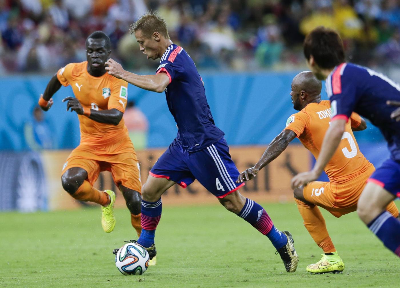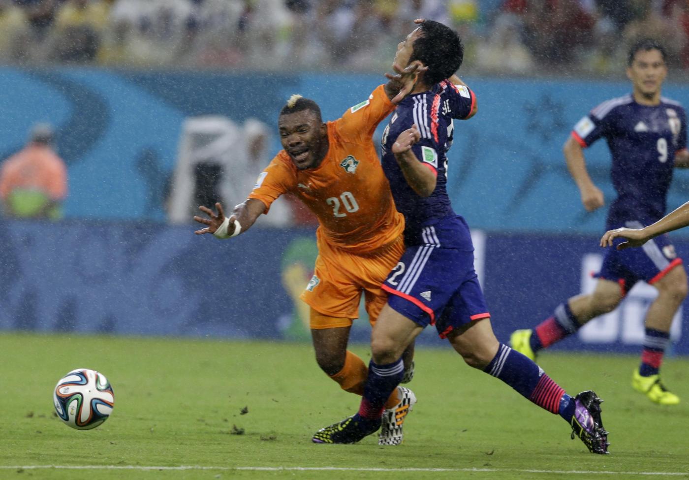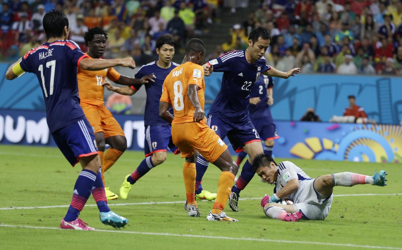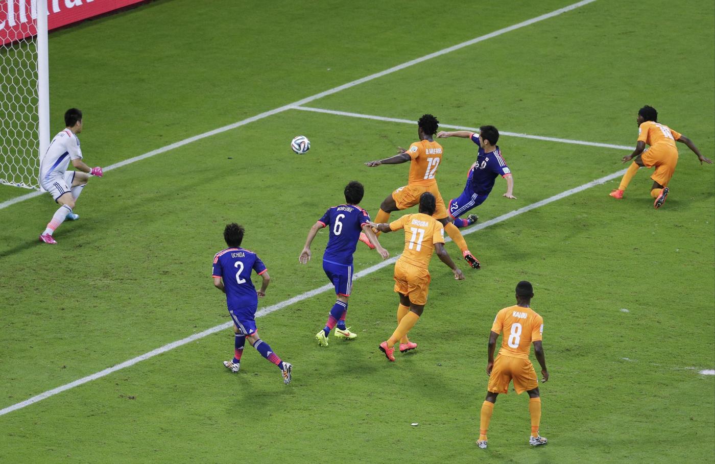 RECIFE, BRASILE – Costa D’Avorio-Giappone 2-1: foto e highlights della partita meno vista (in Italia e in Europa) del Mondiale 2014. Era programmata a un orario proibitivo, le 3 di notte, e dopo la partita dell’Italia con l’Inghilterra, per questo la partita della Costa D’Avorio di Lamouchi contro il Giappone di Zaccheroni è “sparita” dai riassunti televisivi del giorno dopo.