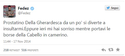 “Prostatino Della Gherardesca da un po’ si diverte a insultarmi. Eppure ieri mi hai sorriso mentre portavi le borse della Cabello in camerino”.