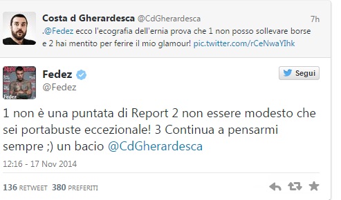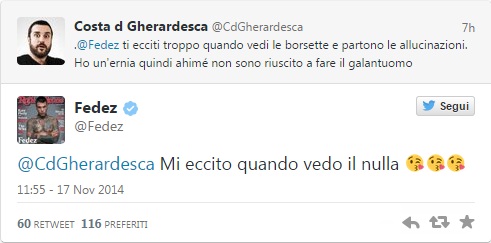 E Fedez, che già su Twitter ha dato spettacolo nelle liti con Maurizio Gasparri e Renato Brunetta, replica stizzito: