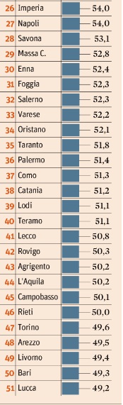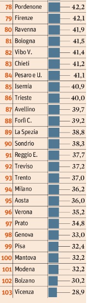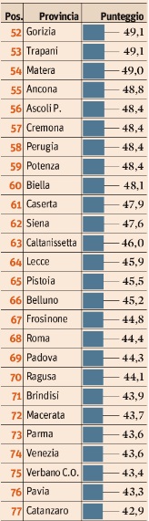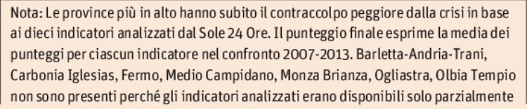 Di seguito pubblichiamo la “classifica” del Sole 24 Ore sulle province che hanno ricevuto il peggior contraccolpo dalla crisi economica 2007-2013.