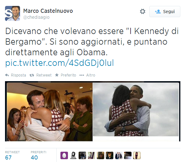 BERGAMO – Giorgi Gori viene eletto sindaco di Bergamo e la moglie, la conduttrice tv e giornalista Cristina Parodi, si prepara a fare la first lady del comune lombardo sfoderando nelle prime foto dopo il risultato del ballottaggio, un vestitino che è lo stesso che Michelle Obama ha indossato dopo la vittoria di Barack.