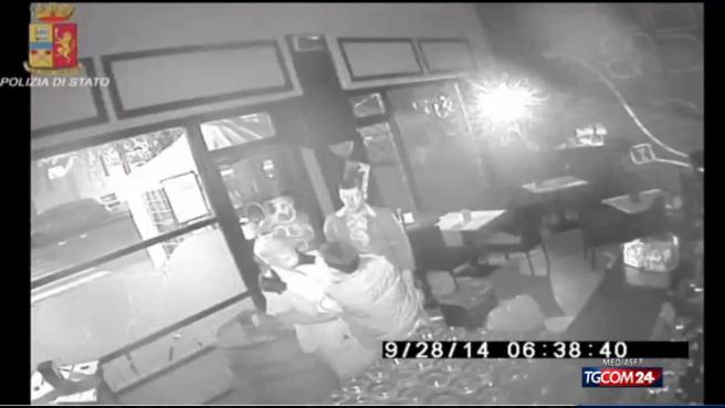 Proprio la descrizione dei tre ragazzi fornita dalla vittima, ha permesso alle forze dell’ordine di identificare e fermare i responsabili. Tra loro, uno era stato già raggiunto dal foglio di via. I fermo immagine dell’aggressione che seguono, sono stati presi da un video registrato dalle telecamere di sicurezza del bar e diffuso dalla polizia: