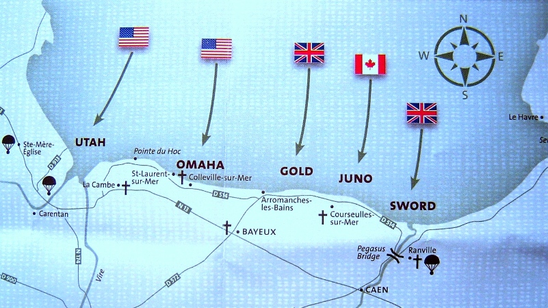 All’inizio pianificato per il 5 giugno, lo sbarco in Normandia iniziò all’alba del 6 giugno col nome in codice “operazione Overlord”. Il comando delle operazioni fu affidato al generale statunitense Dwight D. Eisenhower, il comando delle truppe di terra al generale inglese Bernard Law Montgomery. Lo sbarco avvenne in 5 spiagge diverse ribattezzate in codice Utah, Omaha (dove sbarcarono gli americani), Gold (inglesi), Juno (canadesi e inglesi) e Sword (inglesi).