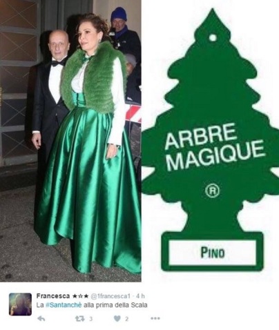 ROMA – Un Arbre Magique, il Grinch, il dinosauro Denver o più semplicemente un albero di Natale. L’abito che la deputata di Forza Italia Daniela Santanché ha indossato per la prima della Scala ha scatenato migliaia di utenti sui social network.