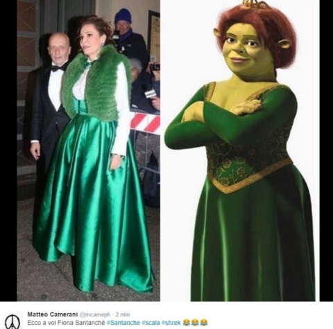 Ma Daniela Santanché ha difeso così la sua mise verdissima: “Non ci ho pensato molto. Diciamo che il nero e le paillettes non fanno per me. Io sono un’istintiva e un’impulsiva. Da tanti anni non andavo alla Scala e bisognava dare un segnale che non abbiamo paura di nessuno, tantomeno dell’Isis. In questo senso il verde richiama, naturalmente, Giuseppe Verdi, ma è anche il colore della speranza”.