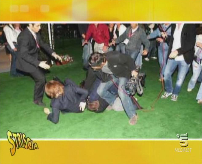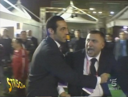 Nelle immagini registrate al Foro Italico di Roma in occasione degli Internazionali di Tennis di nove anni fa, De Santis aggredisce Dario Ballantini (nell’occasione vestiva i panni di Luca Cordero di Montezemolo) e i suoi collaboratori, atterrandoli. Un episodio per cui l’allora presidente della competizione Nicola Pietrangeli si scusò formalmente con Striscia.