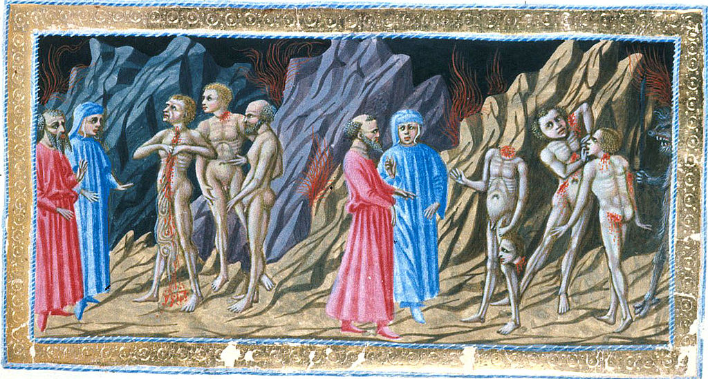 Tutto questo perché, secondo Dante, il contrappasso adeguato per i seminatori di discordia era quello di infliggere ai loro corpi le stesse lacerazioni di cui erano stati artefici in vita.