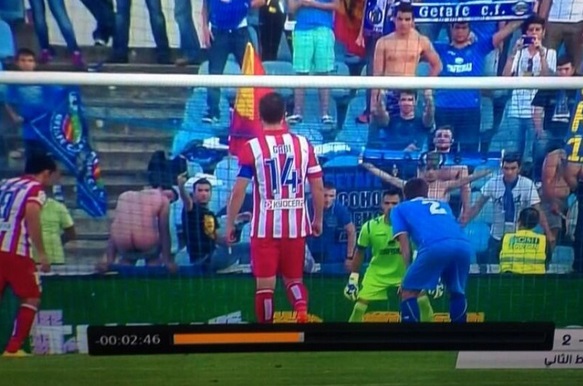 GETAFE – Al momento del rigore per l’Atletico Madrid, un supporter del Getafe si è abbassato i pantaloni mostrando il sedere all’attaccante dei colchoneros Diego Costa. Una strategia che ha funzionato visto l’errore dal dischetto.