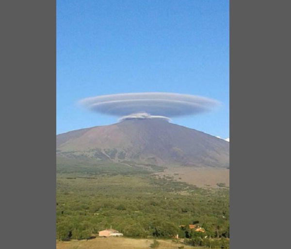Come spiega il Corriere della Sera, grazie ai venti di ponente ed alla funzione di “calamita” esercitata dal vulcano, in questi giorni è stato osservato in diverse occasioni il fenomeno delle nubi lenticolari. In particolare dal lato nord dell’Etna, in corrispondenza di Bronte, dove è stato fotografato lo strano cappello di nubi in corrispondenza dei crateri sommitali. Si tratta di una normale copertura nuvolosa modellata dalle correnti che realizzano delle curiose scanalature modellando le nubi con il loro passaggio.