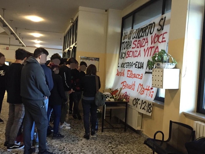 Tutto il mondo scolastico fanese è coinvolto: i ragazzi, pur frequentando istituti diversi, si conoscono tutti e c’è ansia per un’altra ragazza ricoverata in ospedale. Secondo i docenti “ci vorranno mesi per superare lo choc e la paura”. Durante il momento di commemorazione collettivo ragazzi e insegnanti si alterneranno in alcune letture. Osservato un minuto di silenzio prima dell’inizio delle lezioni.