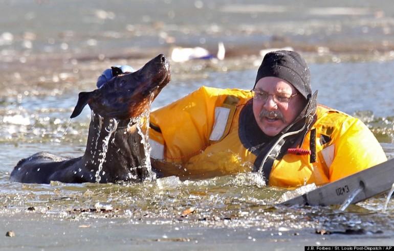 Diablo, questo il nome del cane, era finito nel lago ghiacciato dell’O’Fallon Park: Stan Baynes e Demetris Alfred del dipartimento dei vigili del fuoco, sono intervenuti nel pomeriggio di domenica e sono riusciti a salvare Diablo.