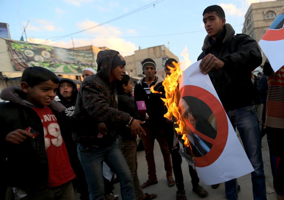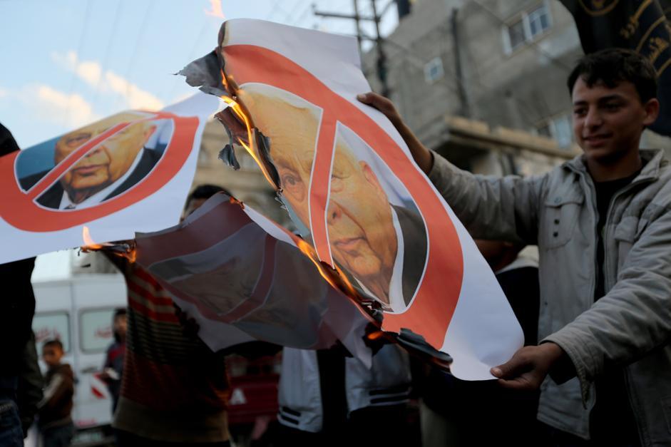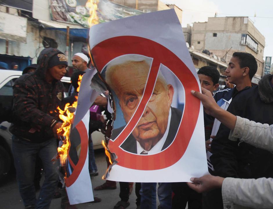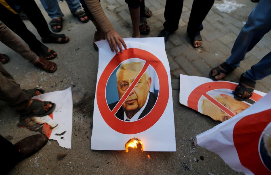 Altre persone, sempre a Khan Younis, hanno dato fuoco al ritratto dell’ex premier israeliano: