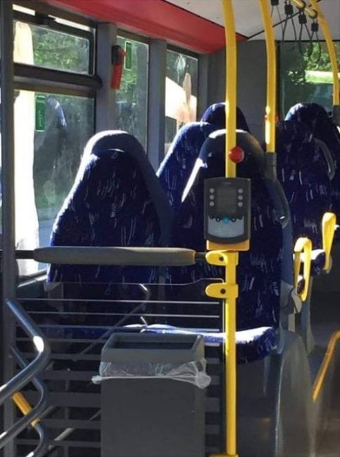 Sull’ autobus non c’è nessuna donna col burqa. Quello che si vede sono dei sedili vuoti. “Spaventoso”, “tragico”, “inquietante” sono però alcuni tra i commenti più ricorrenti. Altri esprimono preoccupazione “per le armi e le bombe tenute nascoste sotto gli indumenti”.