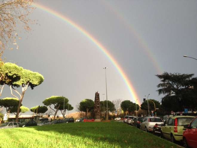 ROMA – Domenica pomeriggio a Roma, dopo la grande precipitazione, è spuntato un meraviglioso doppio arcobaleno nel cielo della Capitale.
