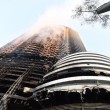 La vicenda la racconta il Daily Mail che pubblica delle foto scattate nei giorni successivi al rogo. L’uomo è rimasto legato al cavo collegato ad una piattaforma per lavare i vetri, ed ha usato le mani per richiamare l’attenzione.