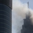 Malgrado le fiamme, decine di migliaia di persone hanno comunque ammirato i tre spettacoli di fuochi d’artificio partiti dal Burj Khalifa, che per l’occasione è stato impreziosito da 400.000 led. In tutto sono stati sparate sette tonnellate e mezzo di giochi pirotecnici.