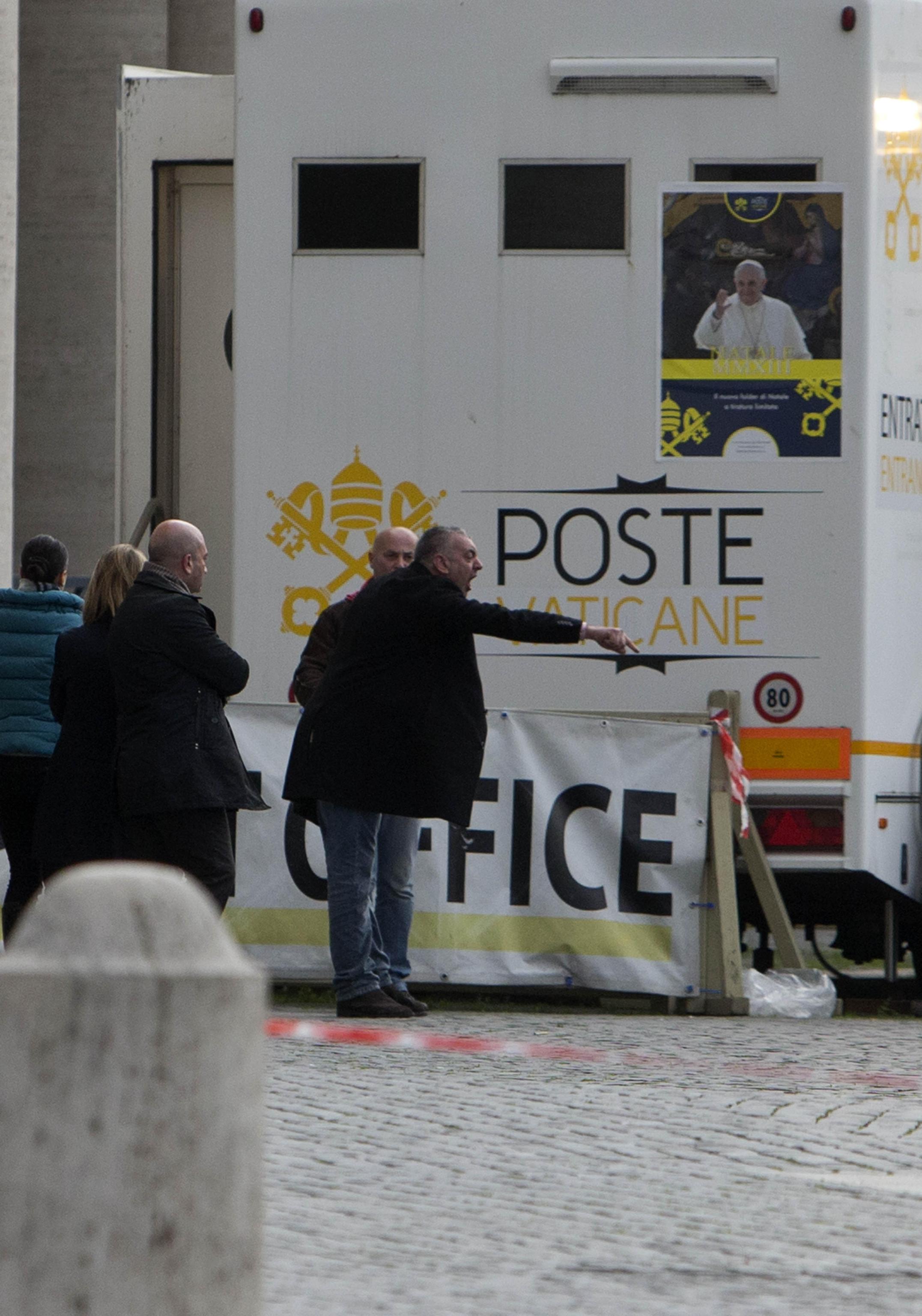 I due uomini erano sotto la parte sinistra del colonnato, guardando la basilica, con in mano una bottiglia di benzina e un accendino.