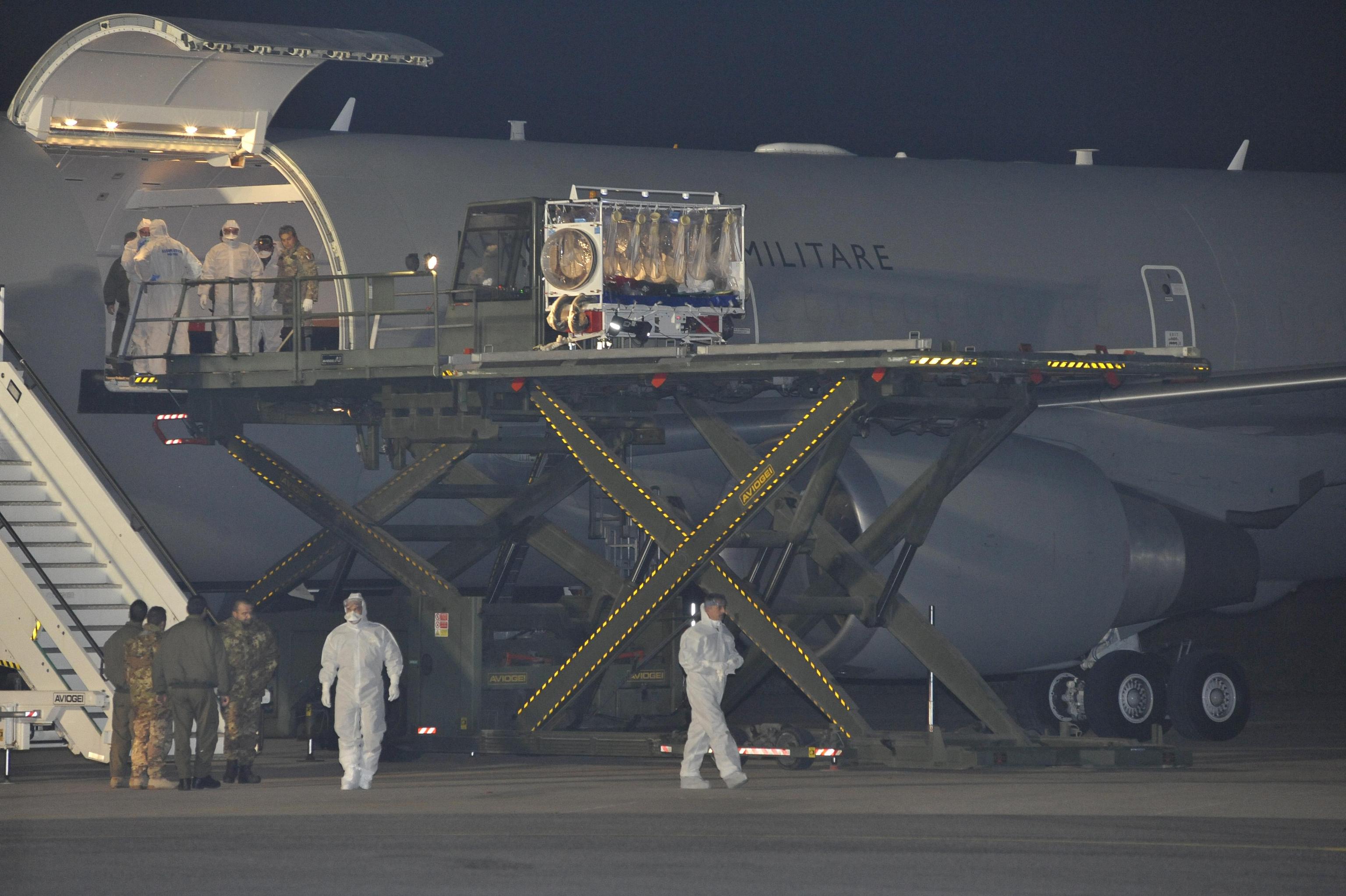 A bordo del velivolo anche una unità di isolamento aeromedico, cioè un team della stessa Aeronautica composto da ufficiali medici e infermieri addestrati ad ogni tipo di trasporto in condizioni di bio-contenimento.