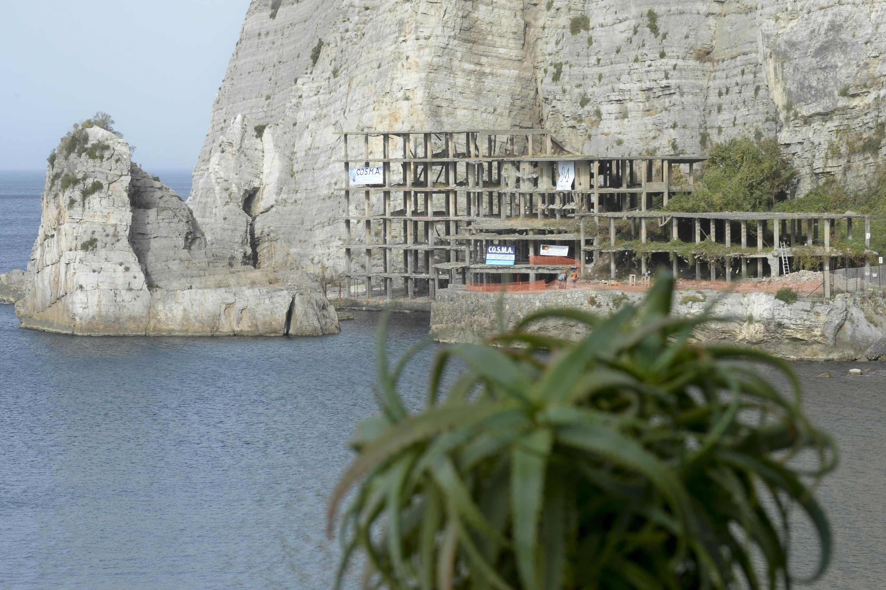 Il rudere del maxi albergo si è accartocciato su se stesso per effetto di 1200 microcariche esplosive. L’abbattimento è avvenuto 50 anni dopo il blocco dei lavori e una lunga battaglia giudiziaria.