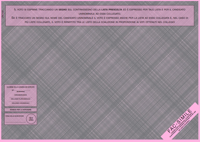 La scheda รจ unica. E uno solo รจ il voto che vale sia per la lista proporzionale che per il candidato nel collegio uninominale. Niente voto disgiunto. Al massimo si puรฒ barrare il nome del candidato al collegio uninominale e poi si puรฒ scegliere una delle liste che lo appoggia.