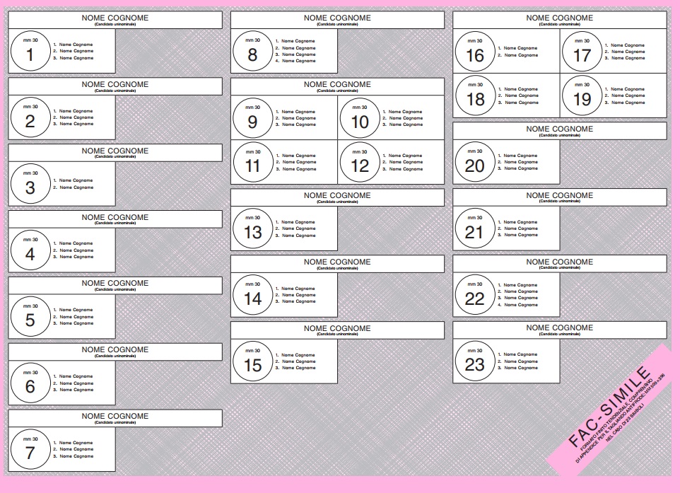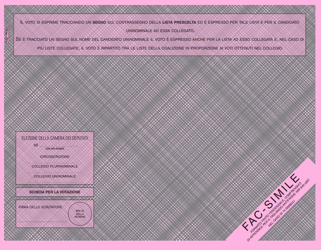 - IL FAC SIMILE DELLA SCHEDA ELETTORALE DELLA CAMERA CONย 23 LISTE (versione PDF).