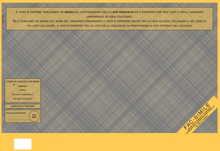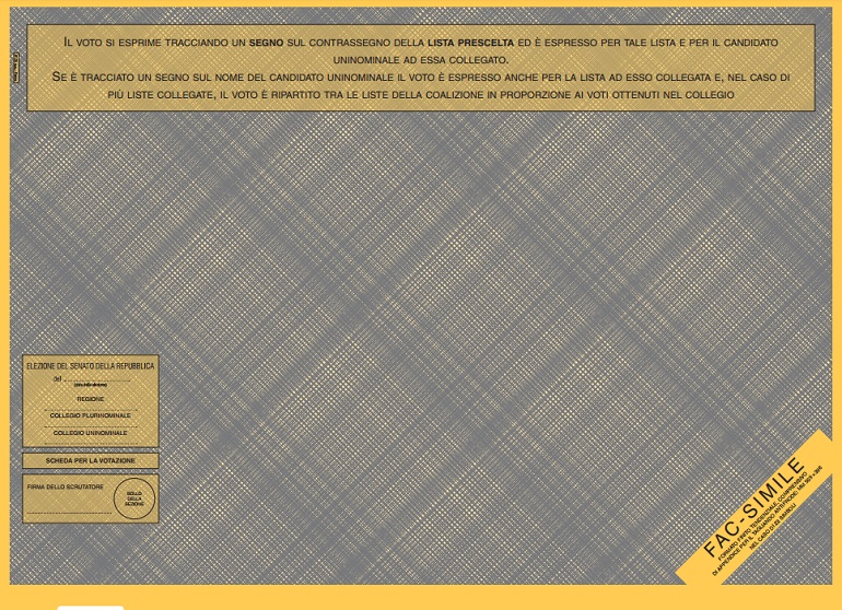 La scheda รจ unica. E uno solo รจ il voto che vale sia per la lista proporzionale che per il candidato nel collegio uninominale. Niente voto disgiunto. Al massimo si puรฒ barrare il nome del candidato al collegio uninominale e poi si puรฒ scegliere una delle liste che lo appoggia.