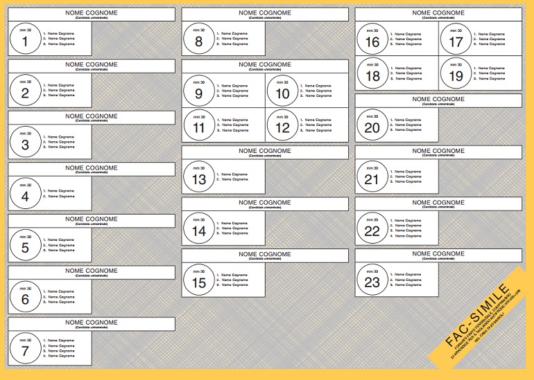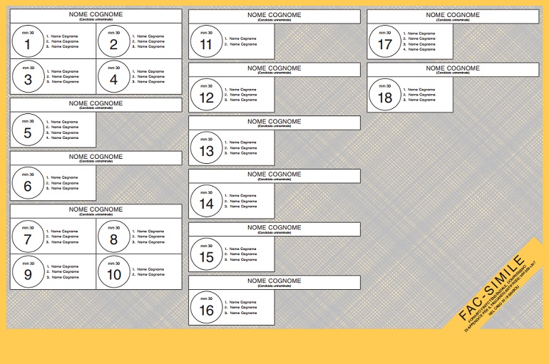 - IL FAC SIMILE DELLA SCHEDA ELETTORALE CON 18 LISTE (versione PDF).